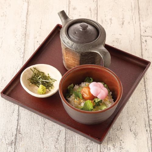 〆の定番の梅茶漬けは、ウメ子らしい仕立てに。